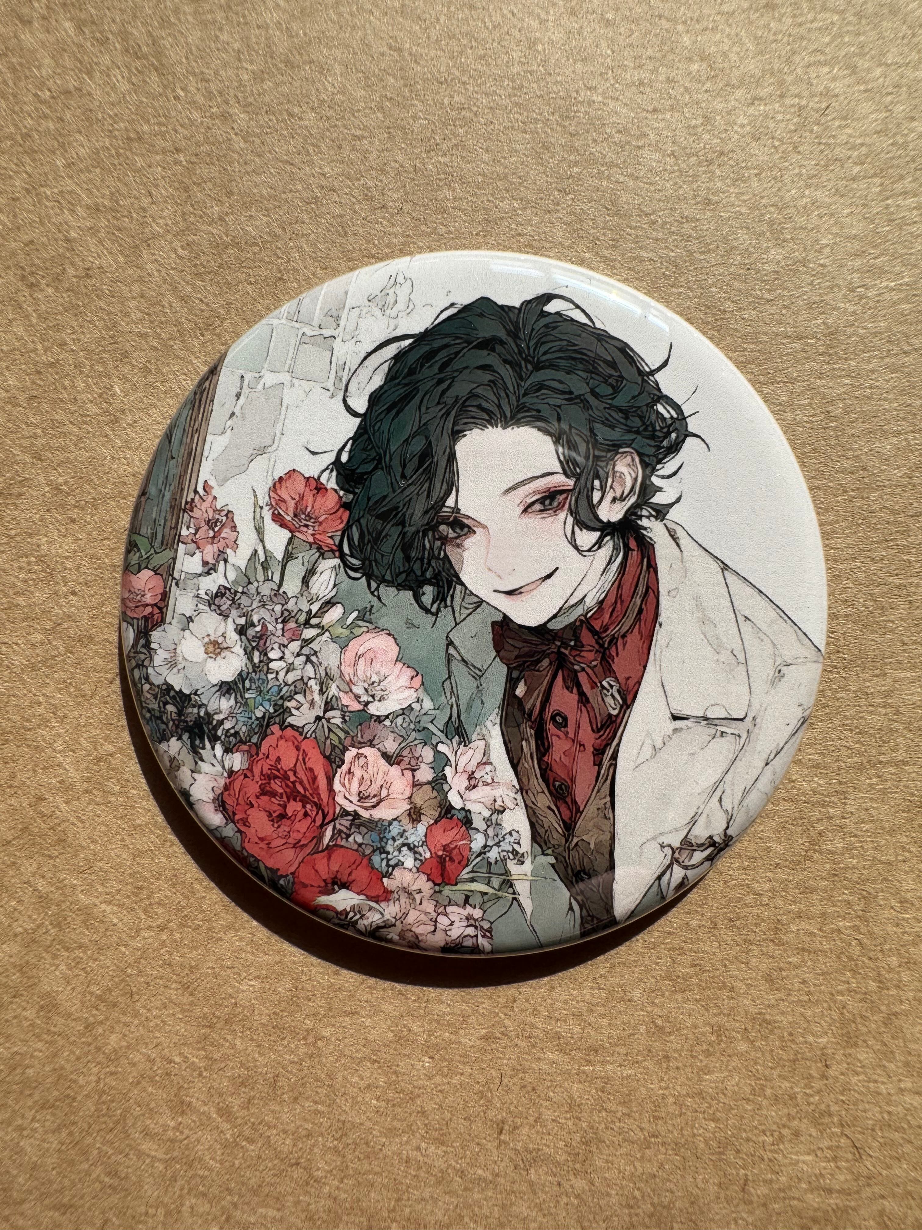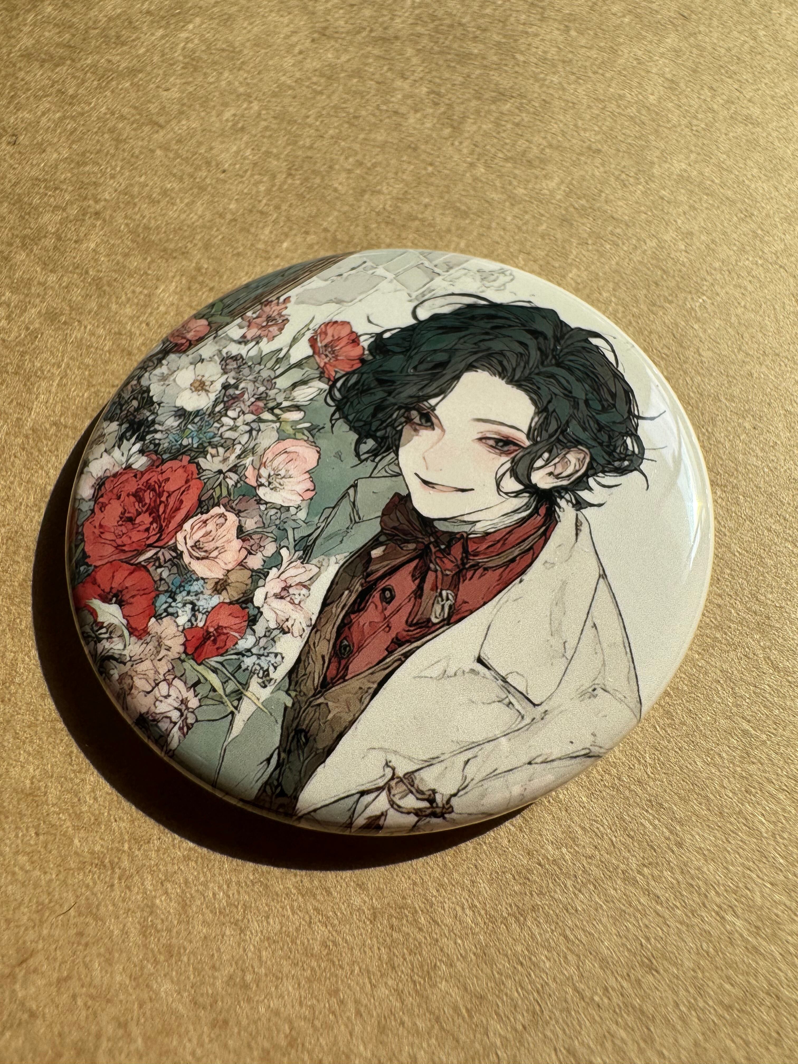 小さな世界を、そのまま留めたような缶バッジです。